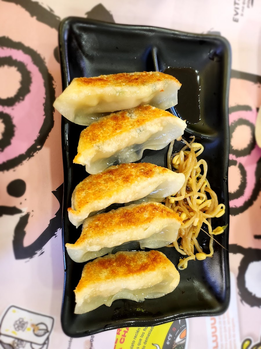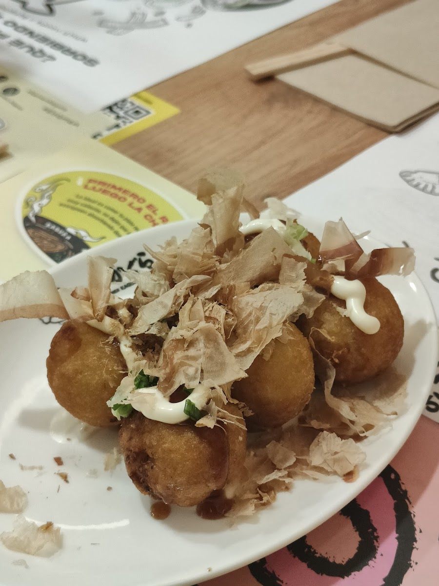 If you're in the mood for something a bit more interactive, the Takoyaki-Japanese octopus-filled dumplings-offer a fun and tasty way to experience authentic Japanese street food. Paired with their Gyozas Al Vapor, these dumplings are steamed to perfection, offering a soft and savory bite that's full of flavor.